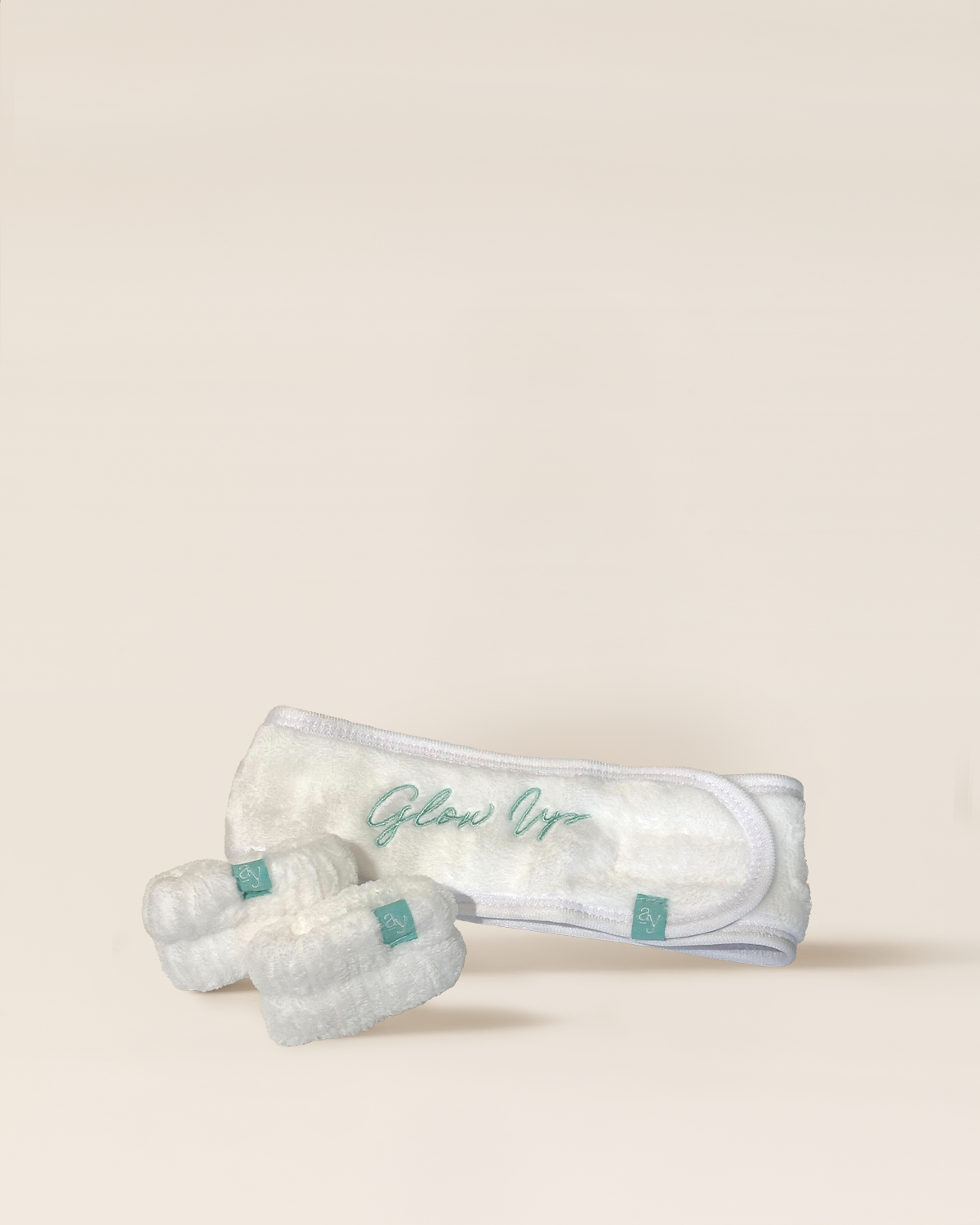 Keep your routine clean and uninterrupted with this plush, comfortable set. Designed to stay soft and secure through every cleanse or makeup moment, our headband and wristband duo is a reusable essential that brings ease, comfort, and care into your daily rhythm.