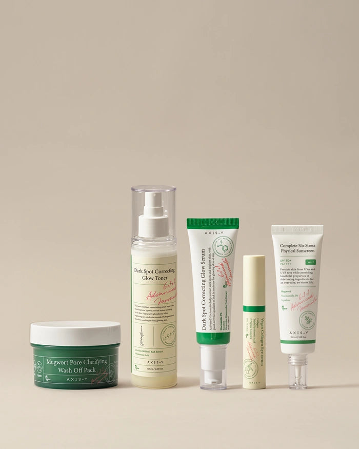 Size: Glow Serum 50ml / 1.69 fl. oz. - Glow Toner 125ml / 4.23 fl.oz - Sunscreen 50ml / 1.69 fl. oz - Mugwort Pack 100ml / 3.38 fl. oz. - 10ml / 0.33 fl. oz.